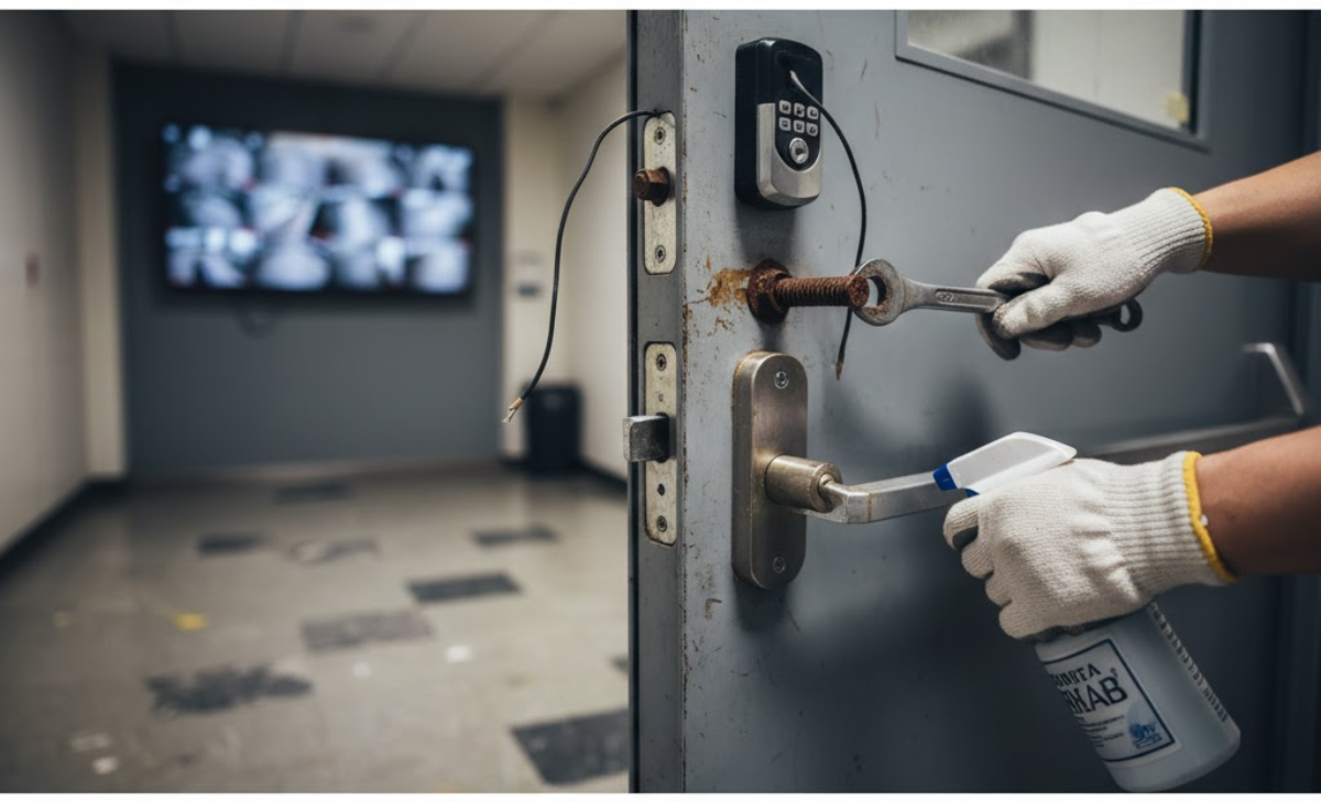 Regular maintenance goes beyond cleaning or lubricating door hinges. It includes inspecting hardware, evaluating door alignment, checking seals, and verifying that access control systems and locks function correctly. A well-maintained door not only strengthens security but also enhances energy efficiency, prolongs door life, and supports compliance with fire and accessibility codes.